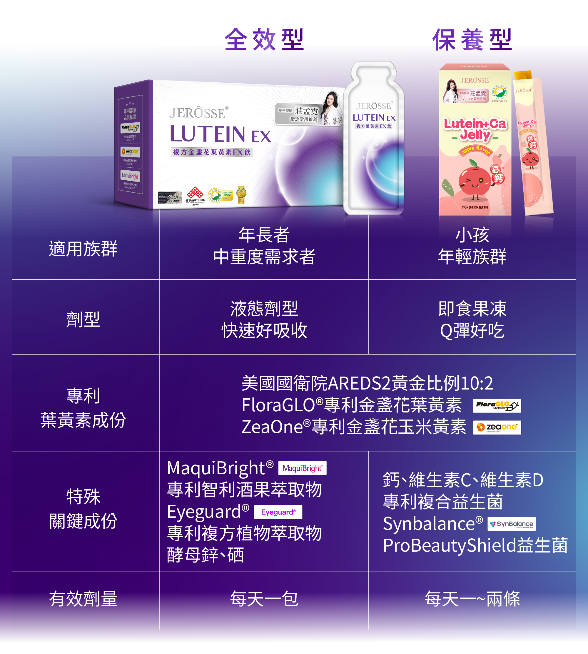 複方金盞花葉黃素EX飲 VS 金盞花葉黃素晶亮凍